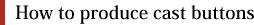 Because it cannot be dyed later, we color it at the stage of raw material. We pile up the material boards while matching colors and patterns, and then transform them to small round sticks by putting pressure and heat on them with the extrusion machine, push them out and cut them into round slices at the exit. Then, after regulating its water amunt, we put them in the dies of compacting machines, compress and heat them, and then they get transformed into the shape of buttons. After that we dry and polish them after removing the burr (unnecessary thing which protruded from the gaps of dies).Here is the features of the material